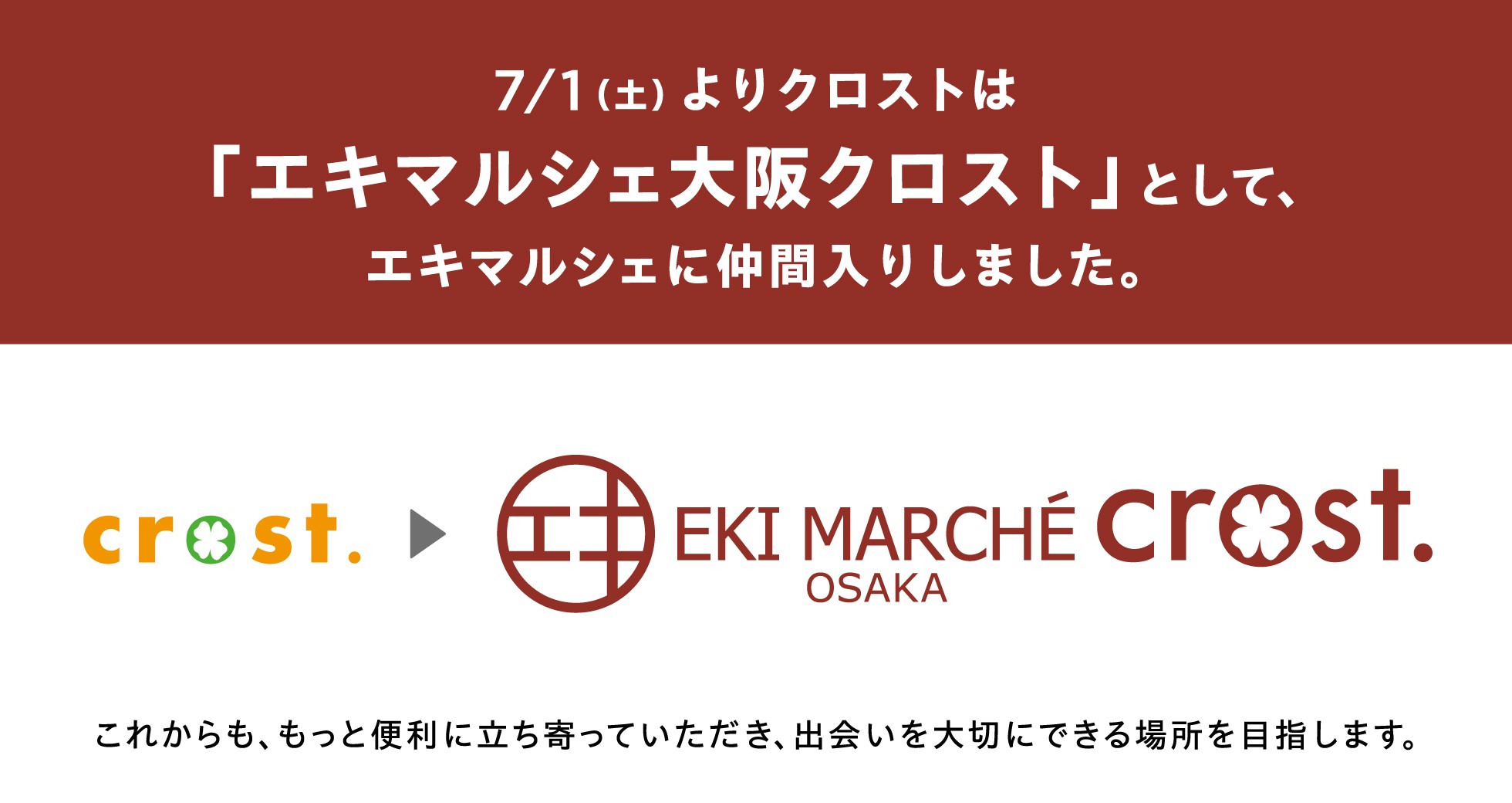 Osaka エキチカ centro comercial «crost» (huelga negra) cambió el nombre de instalaciones «al eki marche Osaka huelga negra» a partir del sábado, 1 de julio de 2023 y se afilió a una marca del eki marche.