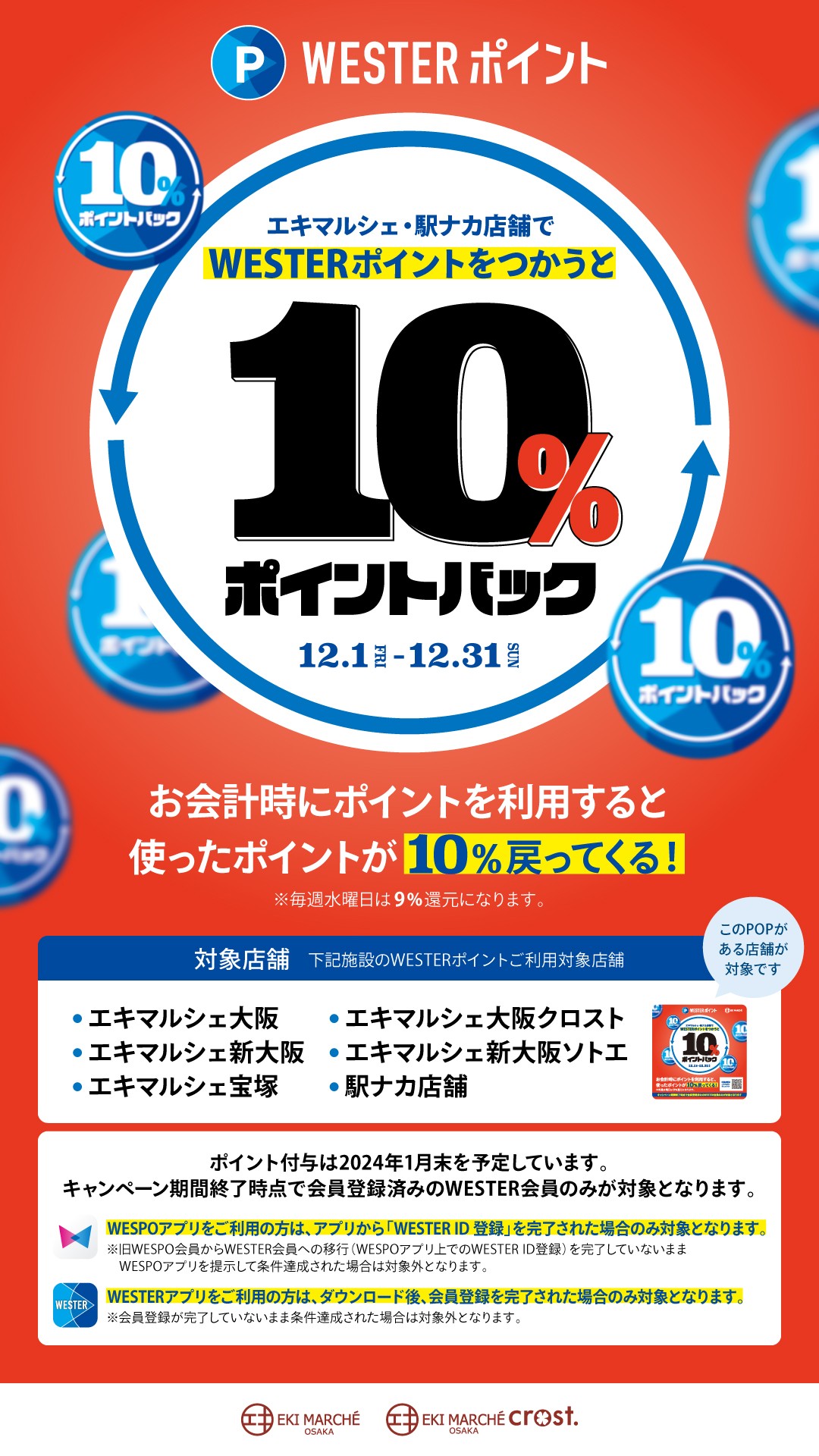¡Realizo «el 10% del punto de WESTER atrás campaña» en la cual un punto puede entrar el que le hacía hacer haciendo compras usando «el punto de WESTER» (punto común en todas partes del grupo de OESTE hijo) que salvó en el eki marche, el OESTE hijo en la estación almacena la tienda durante hasta el domingo en el 31o a partir del viernes, 1 de diciembre!