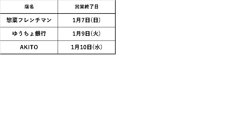 Muchas gracias por usar siempre eki marche Osaka. La tienda siguiente se cerrará. Muchas gracias por favorecerlo hasta ahora.