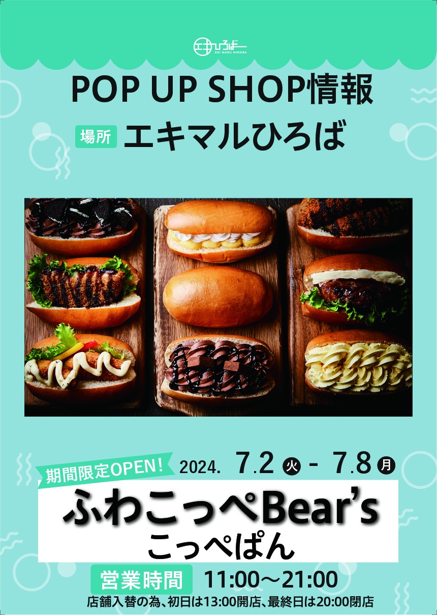 ¡El Oso de ふわこっぺ está ABIERTO en el Event space sólo en períodos del 2 de julio al 8 de julio!