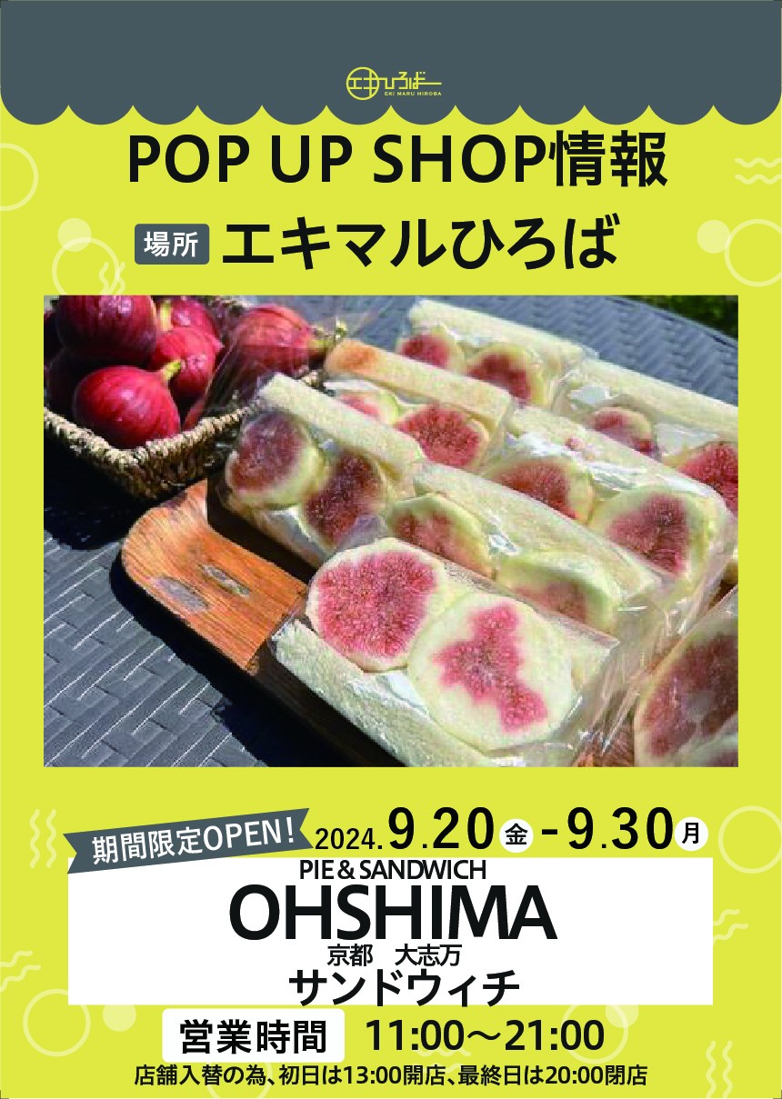 «PIE & SANDWICH OHSHIMA ¡La ambición de Kyoto diez mil @kyoto_ohshima» está ABIERTA en el Event space sólo en períodos del 20 de septiembre al 30 de septiembre!