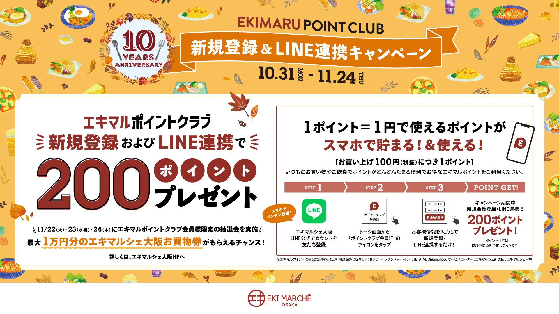 El eki marche Osaka alcanza el décimo aniversario de la apertura el lunes, 31 de octubre de 2022. ¡En la conmemoración del décimo aniversario de la apertura, realizo una campaña con toda la apreciación!