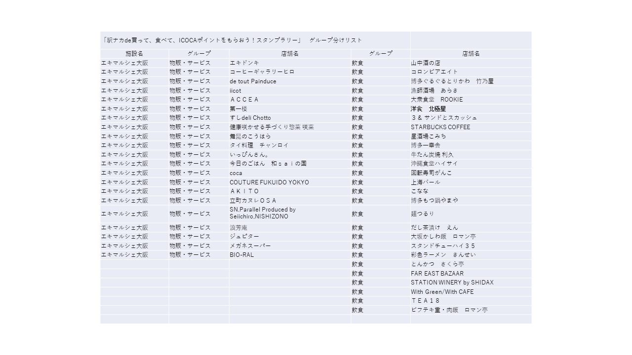 La tienda (111 tiendas) que puede pagar en el eki marche Osaka, eki marche Osaka de la Espinilla, eki marche Takarazuko, ICOCA en la huelga negra