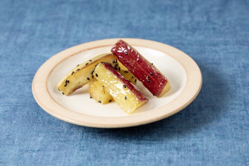 [惣菜咲菜 hecho a mano donde la salud le deja florecer] La batata frita sazonada con el caramelo que tanto un adulto como un niño pueden comer en la paz