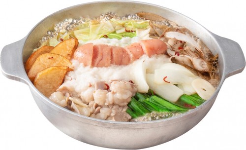 El motsu-nabe que usó a un Mentaiko del ñame rallado, la montaña en verduras estacionales. Es una barbilla y soja la reserva basada en la salsa realza el gusto. Por favor téngalo dejando a Mentaiko adaptarse a la sopa.