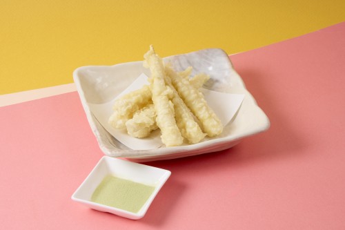 Bañé el bambú de la princesa estacional en la ropa y lo freí amablemente y lo freí en mucho aceite ahora. ¿Y los ingredientes él mismo tempura que un gusto se siente una taza para la expectativa?