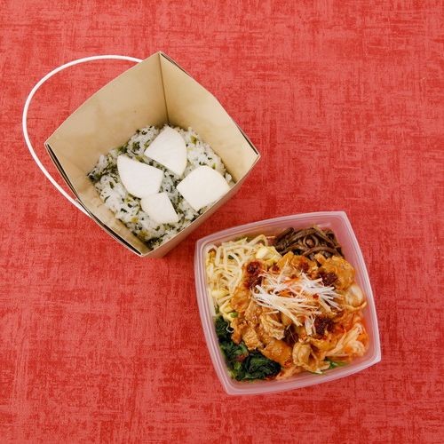 Un producto estacionalmente limitado hasta el final de febrero. Las costillas del cerdo que yo sazonado en la fuente 麻辣花椒 y el arroz de KaKe que prueba cuatro clases de namul juntos. La afinidad con Nameshi en el cual puse el gusto y la carne de cerdo intensa y un nabo de la conserva en vinagre en el vinagre es excepcional.