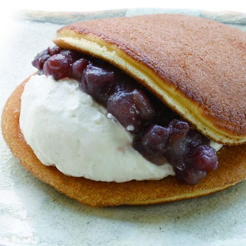 La crema fresca dorayaki que Ikuji, Mikasa excelente en una afinidad y mermelada de la alubia que contiene alubias enteras, crema fresca hecha en la compañía mezclaron en una boca y realizaron un gusto de la Trinidad.